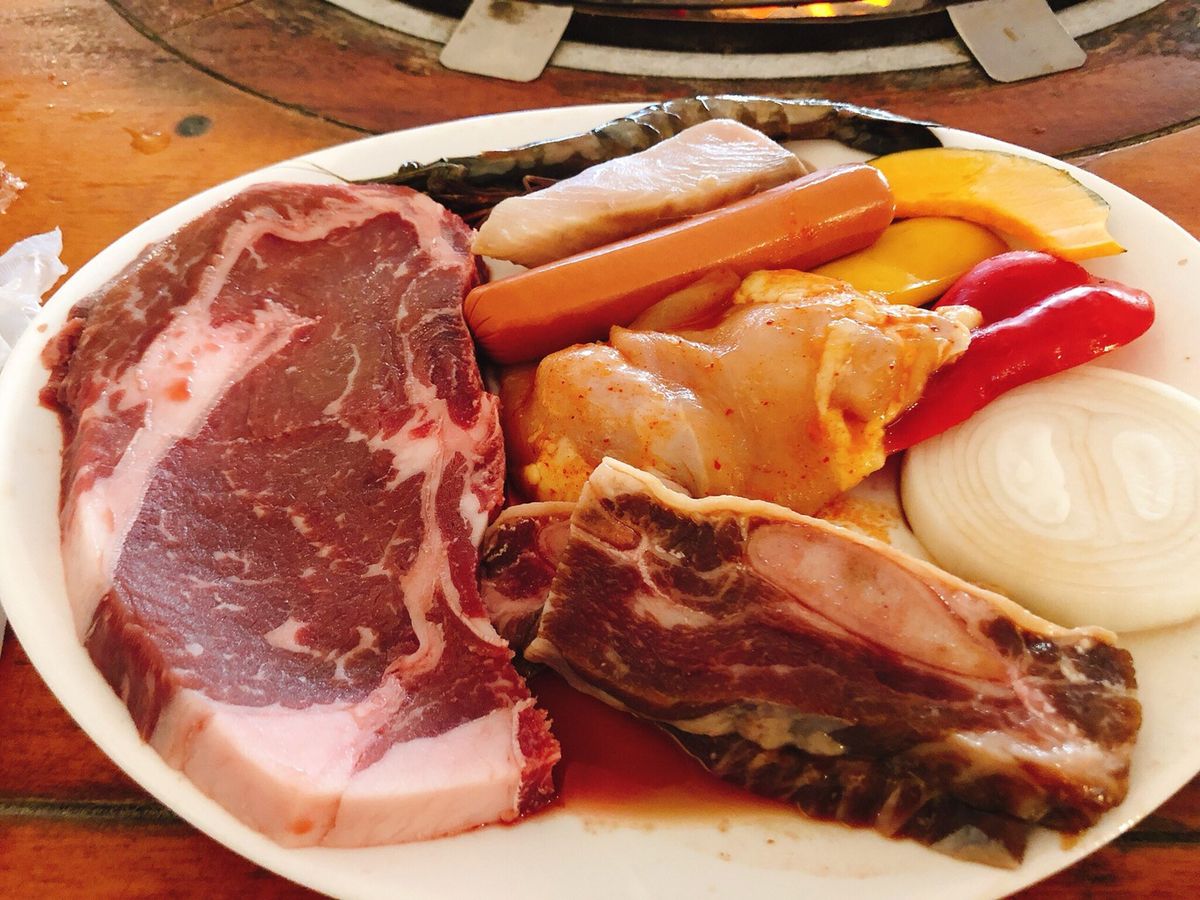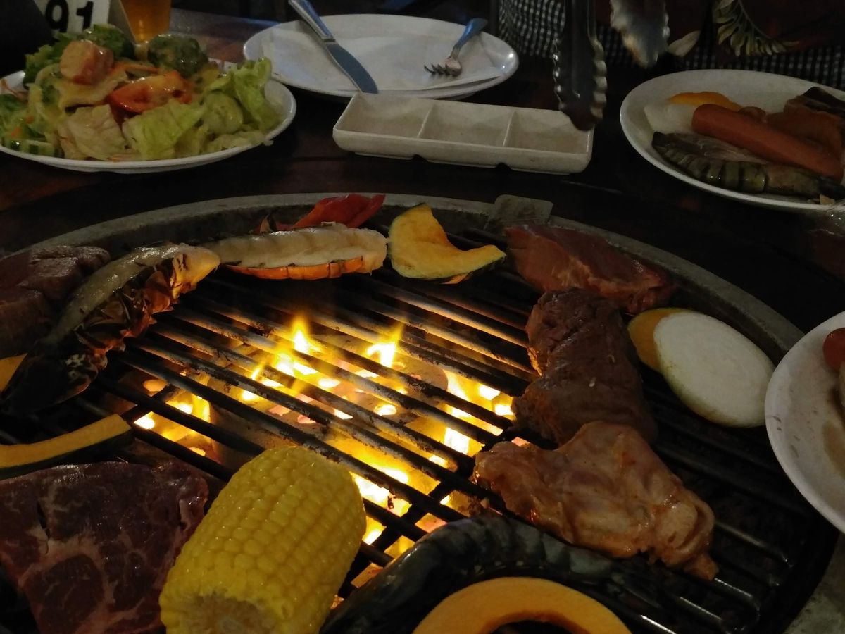 屋外だけど屋根があり、BBQでどの席も焼いているから仕方ないのかなーーー。