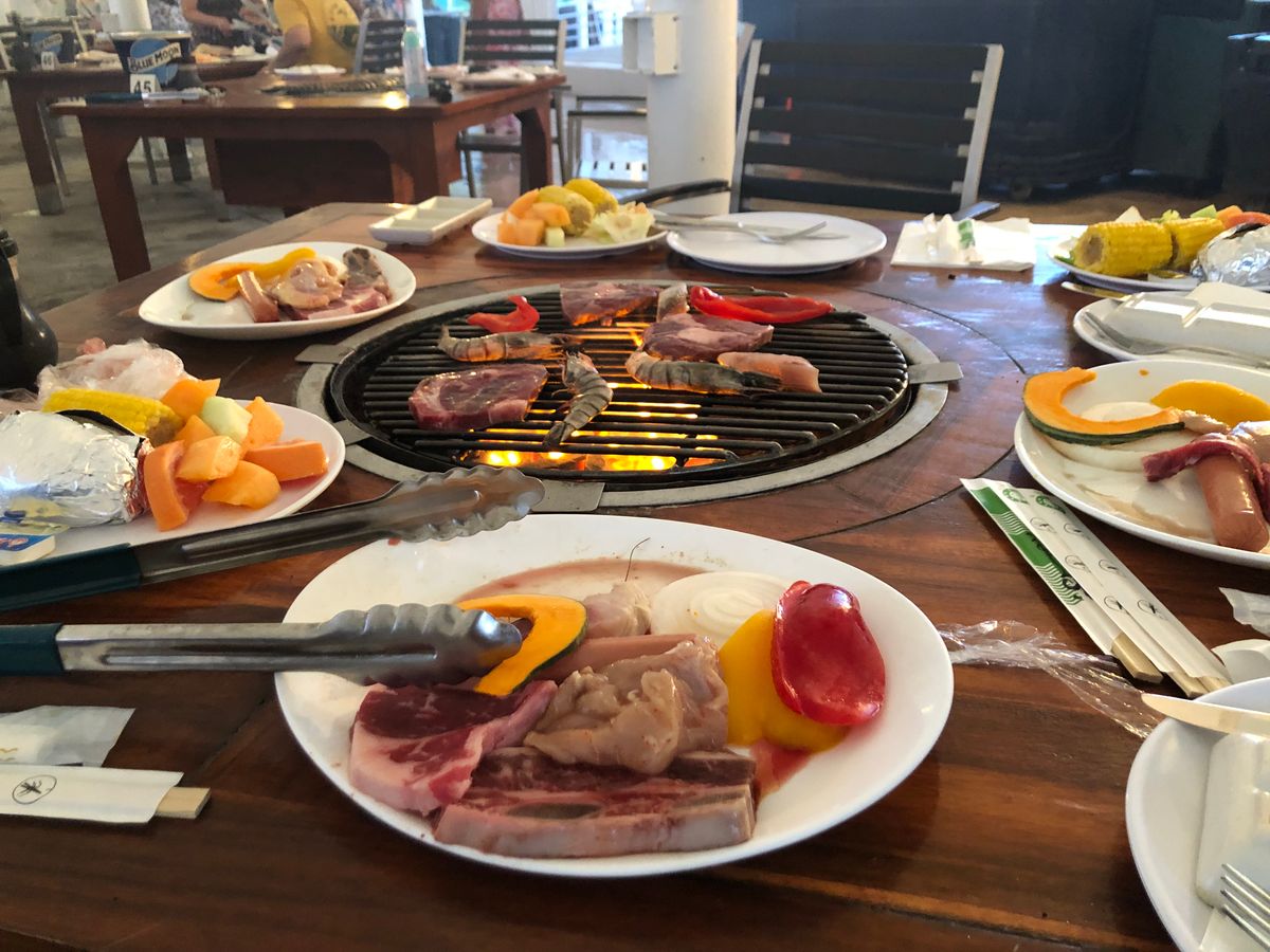 最初のバーベキューはとにかくどんどん焼かないと炭を追加してもらっても焼くのが大変でショーに間に合わず忙しかったです。それだけボリュームのある量だと言えますが、煙がおもいっきりかかって目が痛かったです。扇風機がありましたが、再考いただけたらと思います。