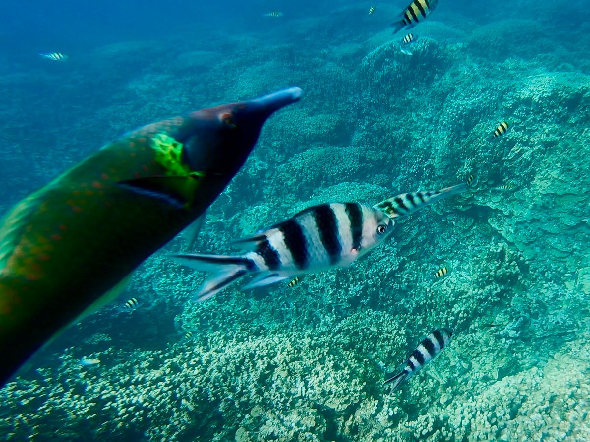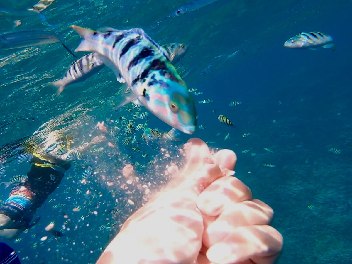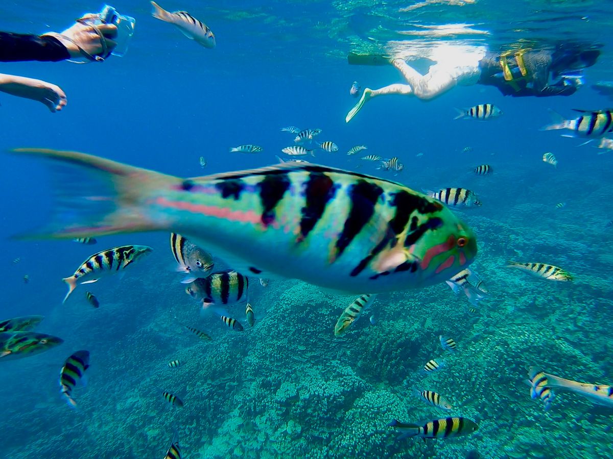 遭遇できて凄く貴重で素敵な思い出になりました!シュノーケリングは自由に泳ぎながら魚を見れました。魚に夢中で流され気味でしたが、エリアを区切ってくださっているので安心でした。