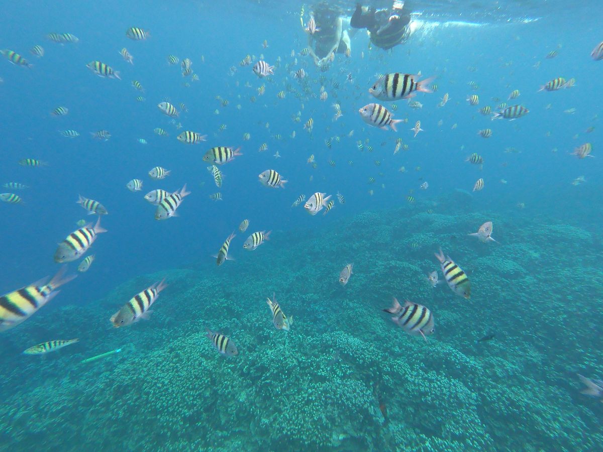 きよみ様 この度はご参加ありがとうございました。海中展望塔周辺は、古代の海底火山が隆起・陥没した場所ですので起伏にとんだ地形から海の色のグラデーション、サンゴ礁、大小さまざまな魚たち…と正に海のパラダイスといってよい景色が広がっています。次回は是非、「おいしい」と評判のランチ付きコースでご参加下さい(^-^)