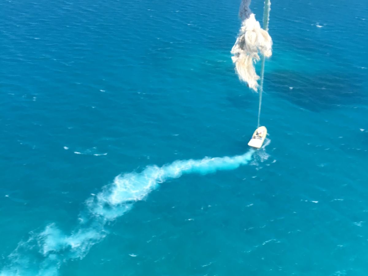 水着でしたが、海に落とされることは無く、ちゃんと繋がるロープを機械で巻いて船へ回収してくれるので、濡れることはありませんでした。