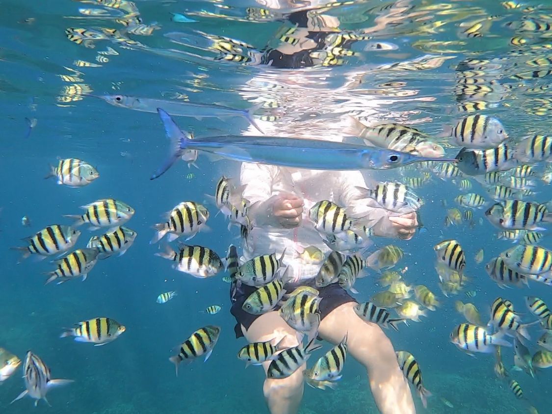 シュノーケリングは、あまり魚はいませんでしたがガイドの男性の方がとても優しく不安がっている母の手をずっと握って案内してくれました。また水中カメラを渡すと、自ら魚に近づき写真を撮ってくれたり海の底まで潜り下から私たちの写真を撮ってくれました。