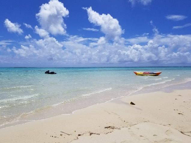 イルカウォッチングはおまけ程度の探索で会うには運しだい。ジェットスキーは決められたコースを走るわけではなく、先導するスタッフの後を自由に追えば良いので、走行に自由度があり、かなり楽しい。他のツアー客との兼合いで、アクティビティをするので、パラセイリングをしている最中にシュノーケリングを行っており、自分達はシュノーケリングなしでがっかり。予定通りのアクティビティをする事はなかったですが、施設も綺麗でシャワーを浴びる事がすぐに可能だし、レストランでアイスコーヒーやビールを買うことができるので便利。ビキニアイランドの雰囲気は一番グアムを感じられる場所でトータル的には満足している。