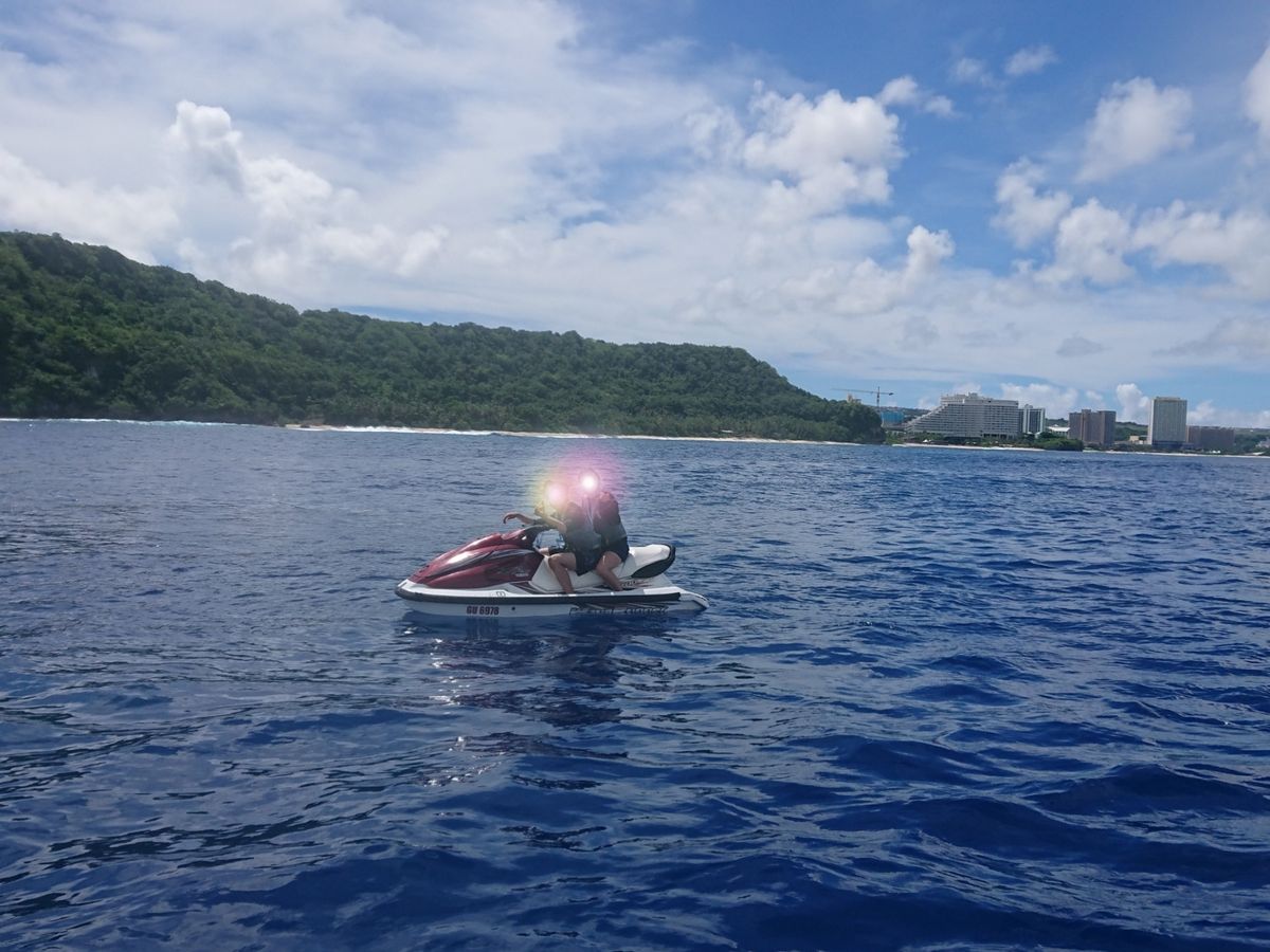Santa Fe Hotel 前のハガニャ湾からスタートし、タモン湾を超え、一路恋人岬へ。意外に沖合の大海原の中を走るため爽快感は抜群でしたが、やや海がうねっていたのでドキドキ感もあり!