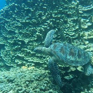シュノーケリングが始まり、ウミガメを見つけたらすぐに教えてくれて、潜って近くで写真を撮ってくれました。