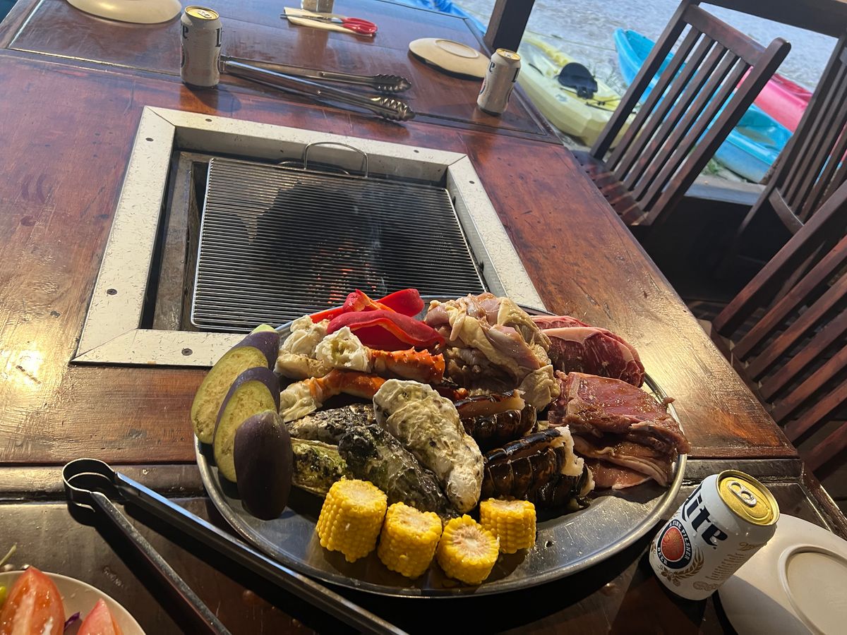 初日の夕食に利用しました。海岸のすぐ隣で、夕日を見ながらのBBQでした。カニやエビ、そして分厚いステーキなどどれも美味しかったです。お腹いっぱいにはなりましたが、ただ、出された量は年長者には多すぎでした。