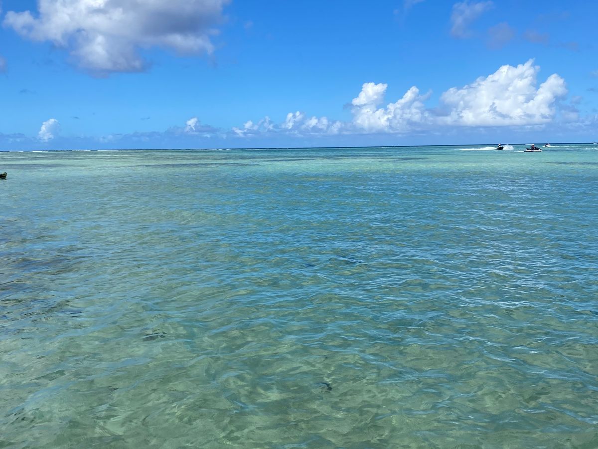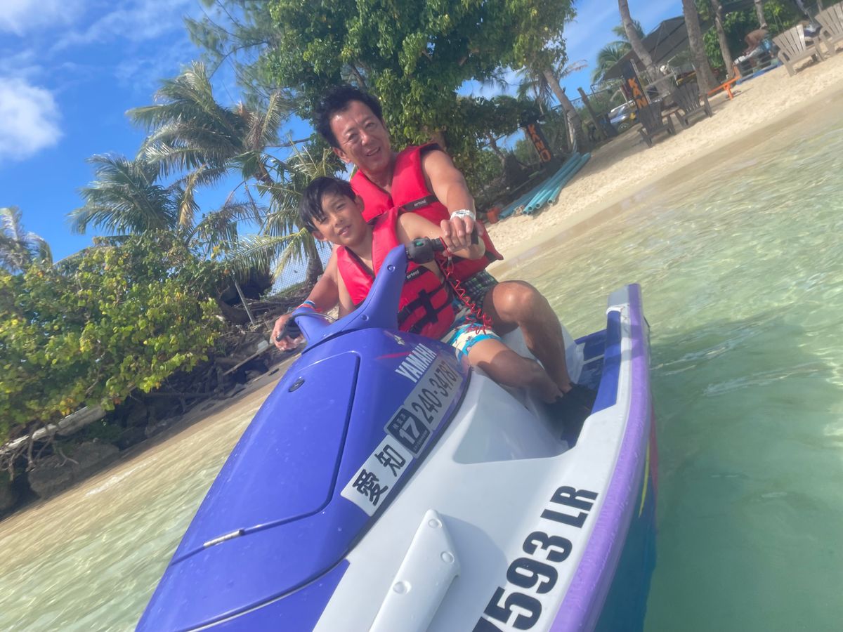 現地に到着した時は雨が降っていましたが直ぐに回復し良い天気となりました。最初は思ってたビーチと違う感じでしたが、ジェットスキーをはじめバナナボート等をするには十分なビーチでした。後ろに私がサポートでジェットスキーに2人で乗車しましたが、孫は大満足で何回もジェットスキーで遊んでいました。又他のマリンスポーツも回数に制限がないのでお気に入りのマリンスポーツは最後まで体験できます。特にシュノーケリングツアーは今まで参加したツアーより楽しめました。スタッフさん全員、優しく楽しく結局最後の帰りのバスまで滞在し大満足な一日でした。
