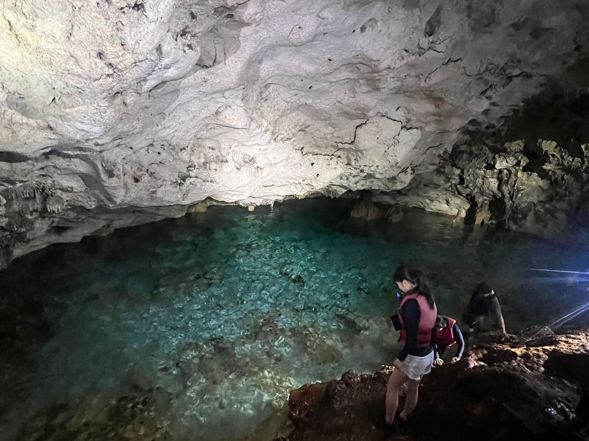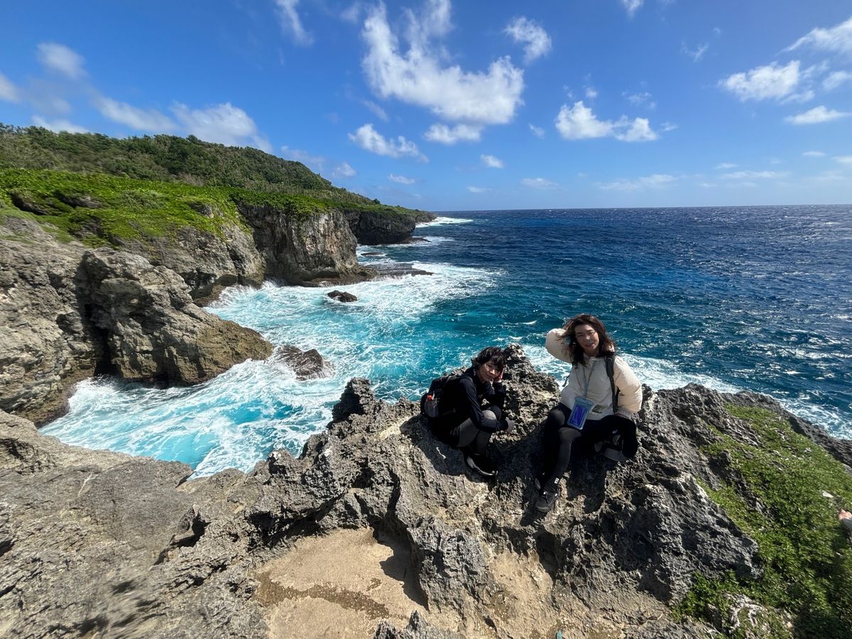 神秘的な洞窟で泳いだあとは絶景の海岸でとても美味しいおにぎりをいただきました。