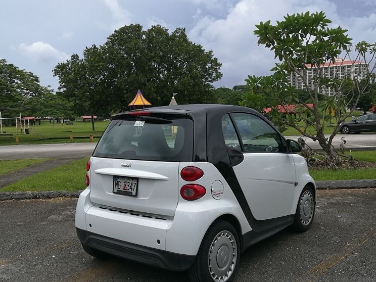 初めて海外でレンタカーを借りました。そのため小さな小回りの利く車って事でスマートカーを選んだのですが、少々癖のある車で、更に起伏のあるグアムでは少し非力に感じました。次回は普通の車にしようと思います。