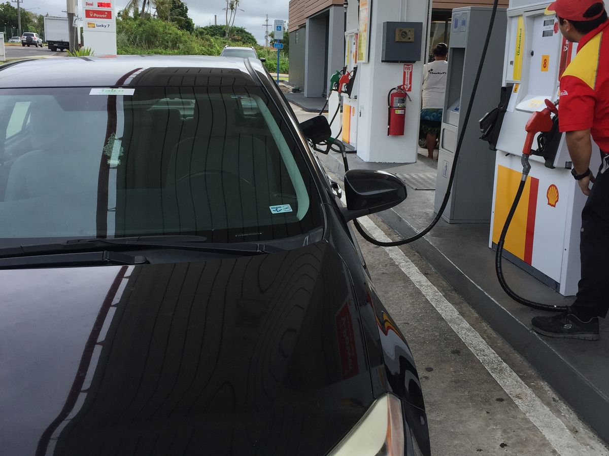 返却時はKマートそばのシェル石油をしていされます。24時間営業で、満タン、レギュラーの英単語を伝えたら店員さんがガソリンいれてくれました。支払いは店内です。