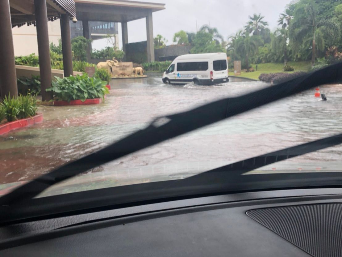 グアムでは激しいスコールが降ることもよくありますが、すぐにおさまる場合がほとんどですので、危険を感じた場合はお客さまのようにしばらく駐車して