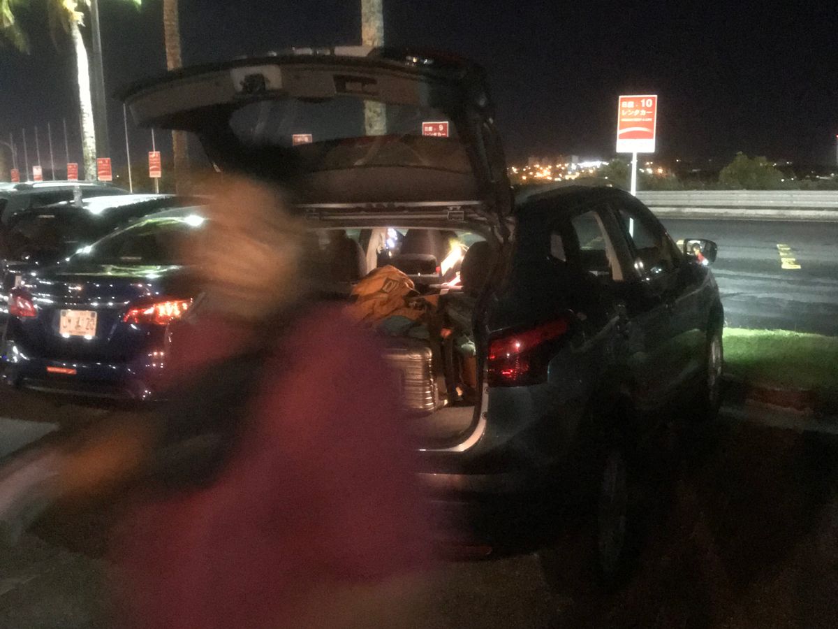 タクシー使うとホテルまで結構値段かかるので、思い切って空港からにしてみました。ニッサンは出口でてすぐにありました。手続きも名前名乗って免許証見せて、クレジットカードで100ドル預けてと。10分かからず終わりました。駐車場の地図と鍵を渡され向かったところ、なかなか大きい車でした。乗り心地も良く、トランクケースも十分入るサイズでした。