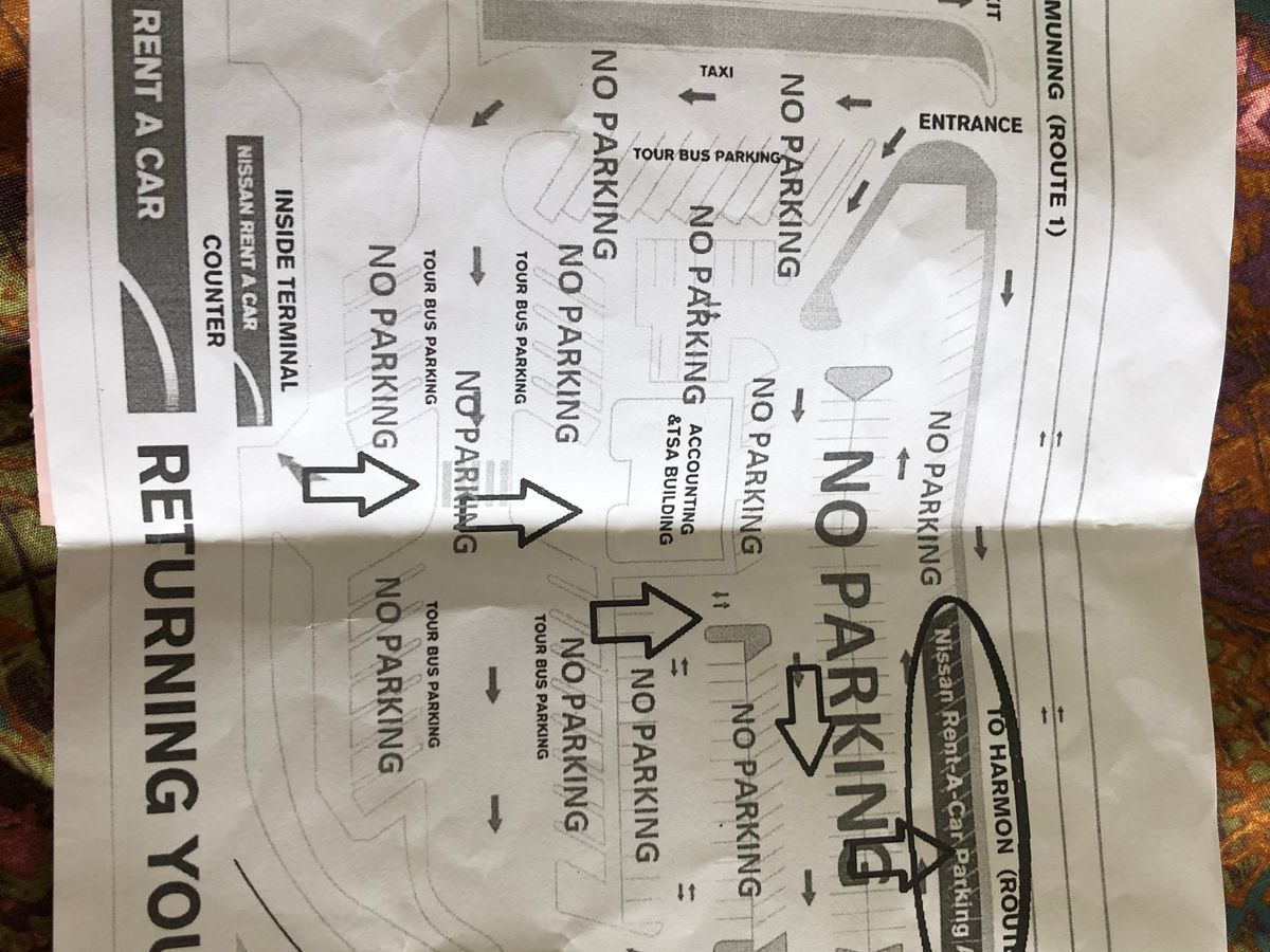 空港内にて手続きができ車も空港内の駐車場にあるのでとてもスムーズにレンタル出来ました!ナビは付いていないのでスマホのWiFiを事前にレンタルすることをオススメ致します。ただこれもグアム空港内にてレンタル出来ます。