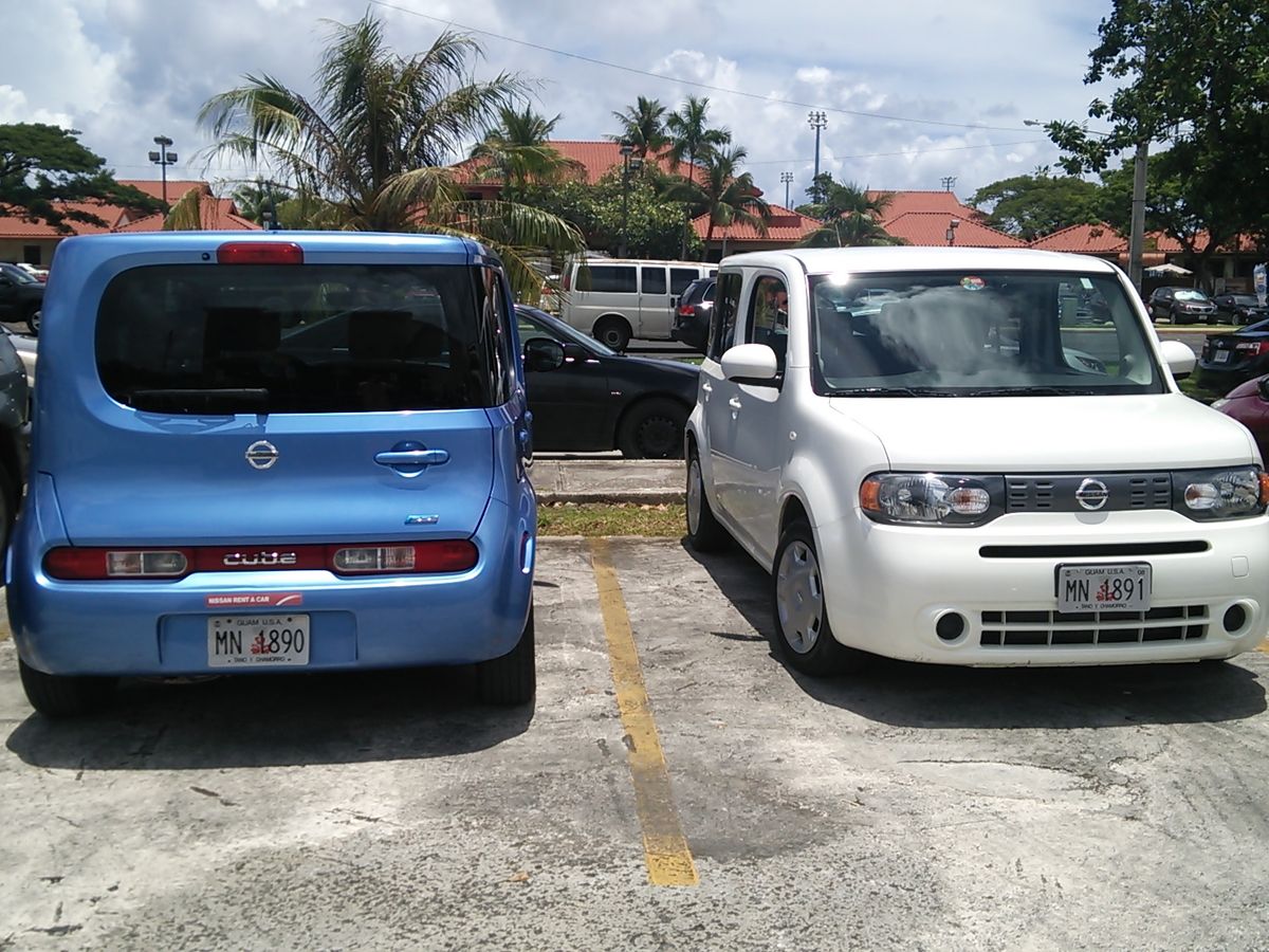 借りたのは2014年8月で、借りたクルマは2013年モデル、2万マイル走っていました。機械的に問題ありませんでしたが、それなりに使い込まれた感じはありました。日本と違い、洗車や室内清掃はそこそこでした。キューブは室内高があり、窮屈な感じがしません。グアムでは飛ばすところもありませんし、手頃で良い選択だと思います。
