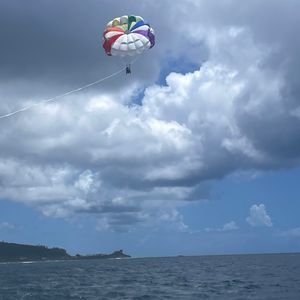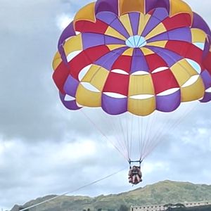 パラシュートは初めてだったのでとても楽しかったです。上からウミガメが2匹ほど見え、飛んでいたのは5分くらいだったかと思います。