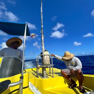 パラセーリングは、六人くらいのグループで一つのボートに乗ります。同乗するスタッフさんは、操縦係と、パラセーリングのサポートをする人の計二人です。