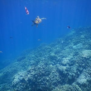 ウミガメは小さい子も合わせて4回出会うことができ、うち1回はウミガメの後(実際にはだいぶ上だけど)をついてしばらく泳ぐことができ、貴重な思い出になりました。とっても可愛かったです!
