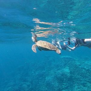 私たちはちょうどウミガメに出会えて何回も浮上してくれたり顔が見えてラッキーでした!