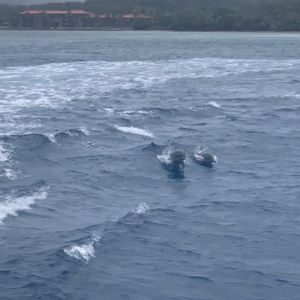 2月中旬に2回目となるグアム旅行に行ってきました。急遽決まった旅行で短い日程の中でも体験型のツアーをしたいと思い、このツアーに参加しました。イルカウォッチングでは船の周りに沢山のイルカが泳いできてくれて、まるで一緒に泳いでいるようでした。私のツアー中はカメを見つけることはできませんでしたが、きれいな珊瑚礁の中魚たちと一緒に泳ぐことができ楽しかったです。一緒に乗船していた外国の方はとっても日本語が上手で気さくに話しかけてくれて問題なく楽しむことができました。ありがとうございました。