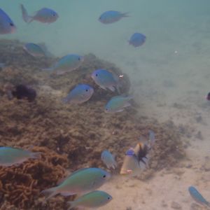 雨は降っていなかったが、波が荒れていたため海の中は濁っており、ほぼ砂嵐状態だった。魚もほとんど見えず時間も短かったため、とても割高に感じた。
