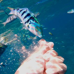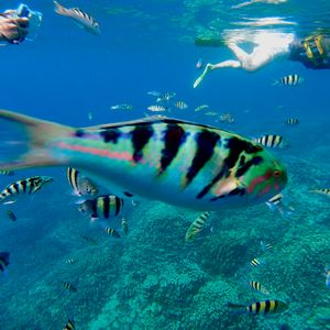 シュノーケリングでは、現地ガイドの方が3名同行し、シュノーケルの道具の付け方や海の中での注意点を丁寧に教えてくれました。魚の餌やり体験で、とても近くで魚と触れ合うことができ、今まで見たことのない魚にも出会えとても感動しました。