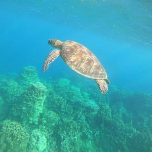 10回に1回くらいはカメと会えないかもと聞いていたのでドキドキでしたが、結果的には2頭のカメと会えました!カメ以外にも水族館で見たことがある熱帯魚が沢山!珊瑚礁もとても大きく広くて感動しました。