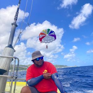 とっても楽しい思い出ができました!母が69歳でギリギリシーウォークができる年齢だったので、最後の挑戦とのことで体験しました。自分はダイビングライセンスがあるので不安なくできましたが、家族はずっと不安がっていました。そこを陽気なスタッフさんたちがたくさん笑わせてくれたり、テンションをあげてくれました。本当にいい人たちでした!シーウォークは大量の魚を見ることができました!いすぎで餌をあげなくても指に寄ってくるくらい笑 ソーセージを配ってくれたので更に魚が増えてすごい絵でした!!写真も撮ってもらえます!パラセールは風が多少あっても飛んでくれます!これも楽しくて家族も喜んでいました♪もう1度やりたいなぁ 本当に素敵な経験をありがとうございました!