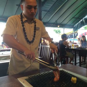 今回3度目のグアム旅で初めて利用させていただきました。ロケーションも中心街から近く、買い物や海に入ってそのまま行けることができてとても便利でした。他のバーベキューにも行ったことはありますが、ここはとてもオススメです!眺めも良く、夕日が沈むのを遠くではありましたが見ながら食事ができました。食べ物も美味しくとってもボリューミーでお腹いっぱいになりました。ドリンクも飲み放題でよかったです!また、サラダやフルーツも食べ放題でした!美味しくたくさん食べてしまいました!!男の人でも結構お腹いっぱいになるのでは…と思います。特にカニがすごく美味しくて綺麗に食べてしまいました♡身がおっきくて、新鮮さを感じました!をエビやカキ、野菜ももちろん美味しかったです。店員さんも親切で、写真をお願いしたところ、忙しいのにもかかわらず撮ってくれました。とてもありがたかったです。オススメのお店になりました。またグアムに行った際にはぜひ利用したいです!