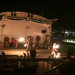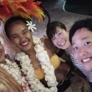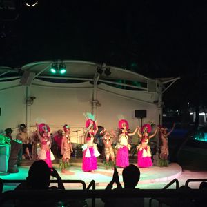 パフォーマーの方たちが非常に気さくで、妻も私も途中で、ステージの方に連れていかれ一緒にフラを踊ったり、写真を撮ったりと、