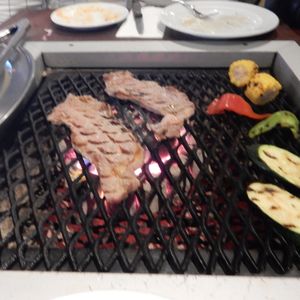 テーブルで自分たちで焼くので飲み物はピッチャーではなく1杯づつ頼まないとすぐぬるくなるので気を付けてください。