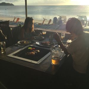 宿泊はoutriggerだったので歩いて3分飛んでも8分の近さ!6時の予約だったので初めの30分程は炭の熱風と日差しの暑さに耐えれませんでしたが陽が沈みかけると絵に描いたような絶景!ロブスターもステーキも美味しく最高でした。また行きたいと思います。