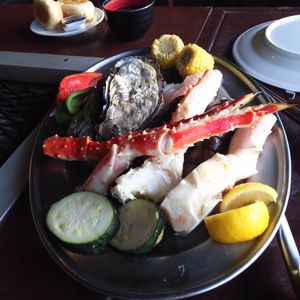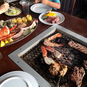 知人の方にオススメされて行きました。予約時に印刷した予約のページ持ってきてと書いてあったもののコピー機壊れててできなくて、、。でもなくても画面見せてはいれました。料理のシーフードにお肉はボリューム満点で大満足でした!