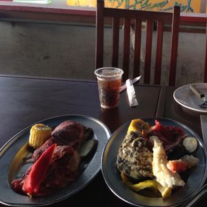 肉もシーフードもそれなりに美味しかったです。サラダ食べ放題でビールも飲み放題でした。