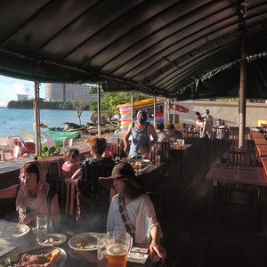 カップルだけでなく、団体客が多く、海に飛び込む人がいたので、騒がしいと思う人はいるかもしれません。スタッフは皆さん親切ですし、気軽に楽しめると思います。