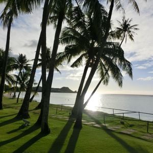 海で日焼けした体に、日差しが強いのはしんどいのとA1ソースが置いていなかったということで☆を4つとしましたが、全体的には最高に楽しめました。日差しが強かったのも日が沈むまでで、日が沈んだら綺麗なサンセットも見れてよかったです。甥っ子が、サンセットをバックに綺麗なシルエット写真を撮れて喜んでいました。