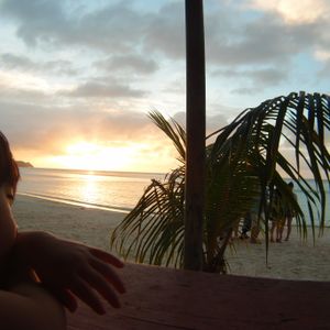 まだ5時半だと日没前で夕日は綺麗♪、ビーチにいた後のお肌には辛い(笑)。