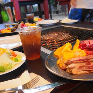 料理の置いてある場所が席から若干離れているので、最初にたくさん持ってきておいて、あとはBBQを楽しむと効率がいいと思います。