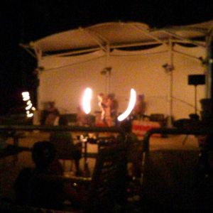 食事はショー前にビュッフェで食事をします。内容はビーフ、ポーク、チキン、ソーセージ、エビや牡蠣、デザート、サラダ、素麺などがありました。料理の味は普通ですが、ボリュームがあり雰囲気も良いので良かったです。デザートのメロンがとてもおいしかったです。サンセットが見れる時間だったのですが、ショーのセットで見られなかったのが残念でしたが、ショーのファイアーダンス?はとっても迫力があり感動しました。