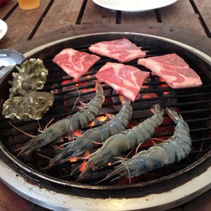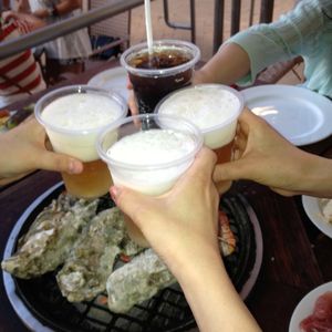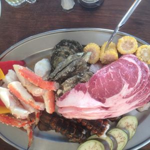 値段もそれなりでしたが、ボリューム満点!味もそれなりに満足できました、牡蠣の食べるタイミングが今一わからなかったですがっ!リブステーキは見た目以上においしかったです!店員の方はとても丁寧で親切でした!夕方からからの参加でしたがとても暑かったです!今度行くときはウチワ持参します!