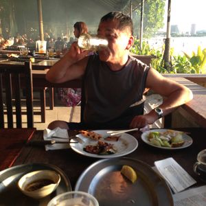 料理は、バイキング形式で、肉類・魚介類のBBQ,サラダ・果物・スイーツetc・・・ひと通りの種類は揃っていました。飲み物も飲み放題で、お得感はあると感じました。ビールが飲み放題なのは、大人には嬉しい限りです。ただ、ビールは、キンキンに冷えてこそ「うまい!!」が、ピッチャーに入ったものを、係の人がテーブルを回って注いでくれるので、ぬるくて少しがっかりでした。口コミで評判の牡蠣ですが、見た瞬間、度肝をぬかれるくらい大きくて、テンションが上がりました。しかし、味の方は、日本の牡蠣のような美味しさはありませんでした。牡蠣は写真に収め、土産話のネタにはなることでしょう。他にも、エビやムール貝、肉類なんかは、食べ盛りの子供たちには、満足だったようです。