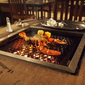 調理の仕方がわからず、とりあえずロブスターを網の上に乗せていたら、スタッフの方が前を通ったときに調理し始めてくれて、バター、レモンをかけてもらって食べました。