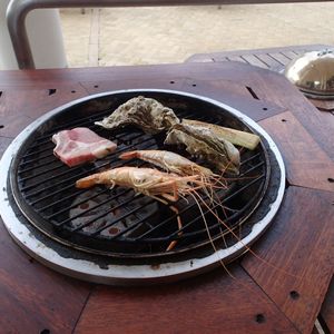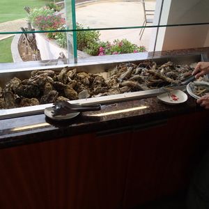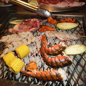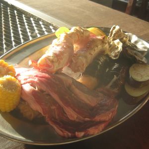 お肉や牡蠣・海老の海鮮焼きの他、サラダ類、デザート、小さな子供が食べる物もあり質、量共にとても良かったです。