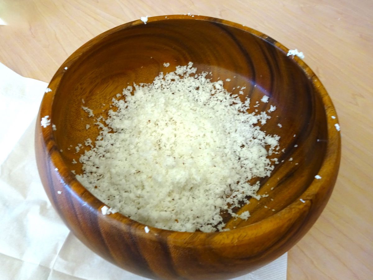 最初は半日コースにしようかなと思ってましたが、夫と娘がビーチバーベキューもしたいということで一日コースにしました。実際には、スタッフさんが良い感じに調理された料理を12時くらいにいただきましたが、美味しかったです。その後、ココナッツをさばいて、グラニュー糖と混ぜてココナッツキャンディを作る実演がありました。温かいココナッツキャンディは、どこか懐かしい、素朴な美味しさでした。