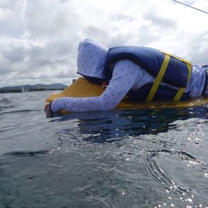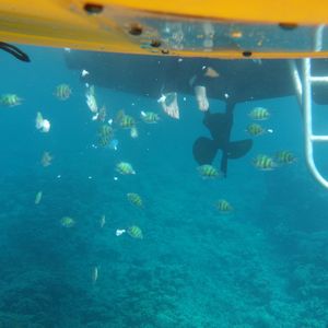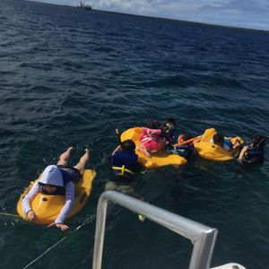 実際に、シュノーケルをした大人も大満足!!シュノーケルができない、1歳児〜幼稚園児、祖母も黄色いボートに乗り、海の中を泳ぐ色とりどりの魚を見ることができました!!
