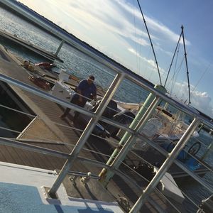 2歳と0歳連れで行きました。参加者は多かったですが、船は思っていたより広く、子連れでゆっくり過ごせました。スタッフが子どもたちにとても優しく接してくれて、植物で編んだティアラを作ってくれたり、日本語で話しかけてくれたり、温かい接客でした。残念ながら天候に恵まれずサンセットは見れませんでしたが、グアムの海を眺めて、ゆっくりご飯を食べました。ディナーはグアム飯!というかんじの、お肉メインのビュッフェ形式です。底釣りもしましたが、子どもたちはあまり反応がなかったので夫が一人で釣っていました。