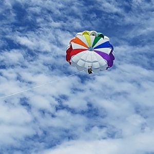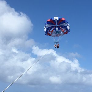 スコールはありましたがアクティビティ中は天候に恵まれ、エメラルドグリーンの素晴らしい海を眺めながらのパラセーリングや、初めてのジェットスキーは最高に楽しかったです。可愛いイルカさん達にも会えました。