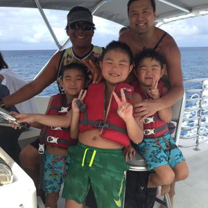 シュノーケルは最初15分ほど説明があると聞いていたけど、特になく、次から次にベストやフィンを渡され、半ば強引に海に入るように連れていかれたので、どこまで沖に行くのかもわからず、はじめての子供達は少し怖がっていました。初めての5歳の子供にもシュノーケルを加えて海に入るよう誘導され、まだ小さいのでボートの上から餌やりでいいかなと思っていたので、案の定号泣してしまい、見兼ねたスタッフがボートに誘導してくれました。