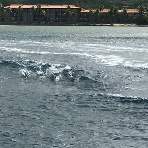 野生のイルカがたくさん見られて良かったです。船で波を作ってジャンプを見せてくれます。3歳の娘は船の揺れを少し怖がりましたがトランポリンと足のつかない海もちゃんと入れて楽しませてもらいました。上の7歳の子と親はシュノーケルもできてカラフルな魚が間近で見られて素敵な体験でした。