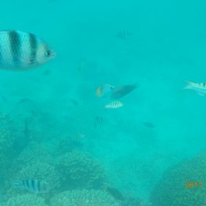 港を出発後、かなり速い時間に、数匹のイルカに遭遇できました。ボートがつくる波でジャンプするのが見られました!シュノーケルした場所は、それほど魚が多くなかったので、今一つでしたね。帰りのバスでお弁当を配られたので、ホテルに帰ってから食べました。船でジュースをもらっておいてよかったです。配られるのはお弁当のみですから。野菜いため弁当は、今一つのお味でしたが、空腹だったので美味しくいただきました。