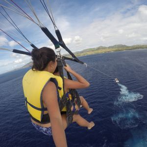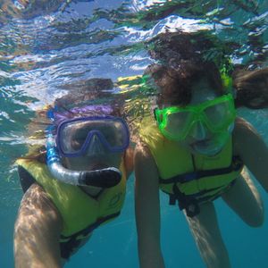 最初にたくさんのイルカを見られたのですが、そのイルカが浅瀬に行くと近づけないからと、シュノーケリング等の後にまたイルカを探して頂き、間近でも見ることができました。息子は滑り台も楽しみ、シュノーケリング時の魚の多さに興奮していました。ガイドさんはとても楽しく盛り上げて下さり、家族一同大満足でした。